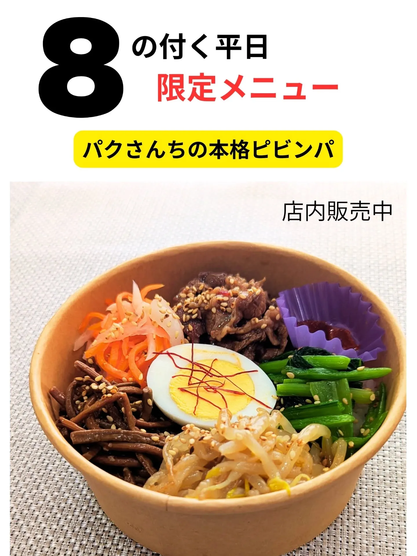 ただ8の付くの日をうっかり忘れてしまう方や、全然ピビンパの日の存在を知らない方もまだまだいらっしゃいます。